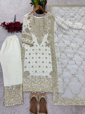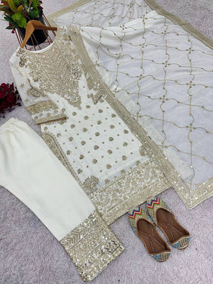 - Pant Fabric: Heavy Chinnon with Heavy Embroidery Sequence Work and Elastic Waist