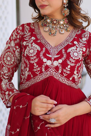 This stunning Festival Long GownĀ is designed with exquisite heavy sequence embroidery on Fox Georgette fabric, offering an elegant and regal look. The gown has a generous flair of 3.50 meters and comes with a matching dupatta featuring the same intricate embroidery. This outfit is ideal for festive occasions or weddings, combining beauty, comfort, and style. Available in fully stitched sizes, ensuring a perfect fit.