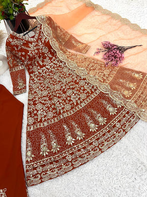 💥 **Full Heavy Embroidery Sequence Work Gown with Fully Stitched Bottom and Dupatta - Ready to Wear** 💥