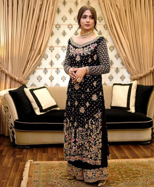 ♥️*Launching New Winter Collection Beautiful Heavy Embroidery And Riveted Moti Work Top - Plazzo With Dupatta*