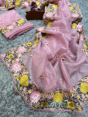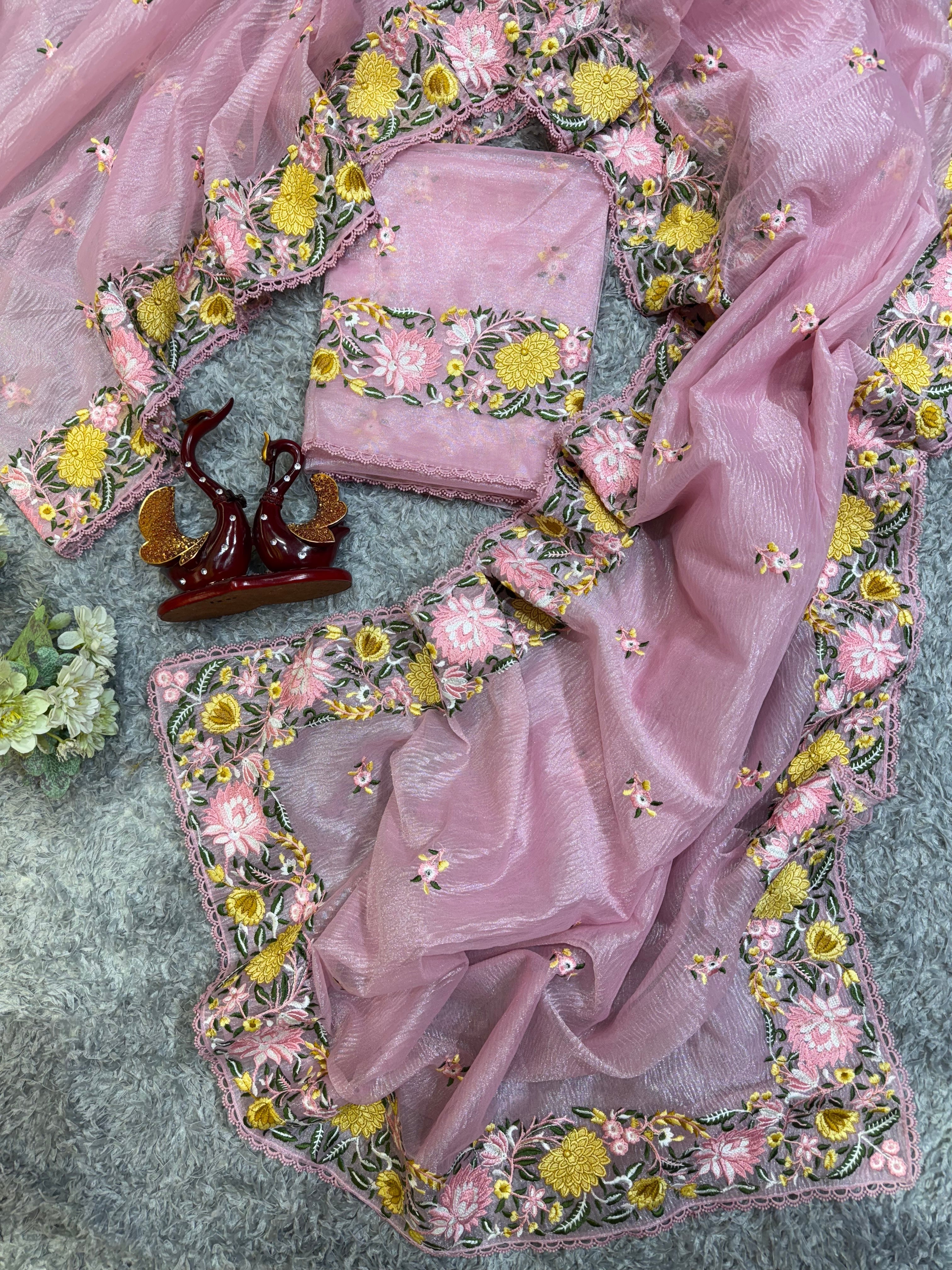 Blouse: Unstitched blouse featuring intricate multi-thread embroidery, perfect for tailoring to your style