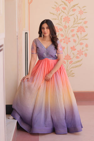 Elevate your wardrobe with this exquisite readymade designer gown, crafted to perfection for modern elegance and timeless appeal. Designed with attention to detail, this gown blends luxury, comfort, and style — ideal for festive occasions, weddings, and formal events.
