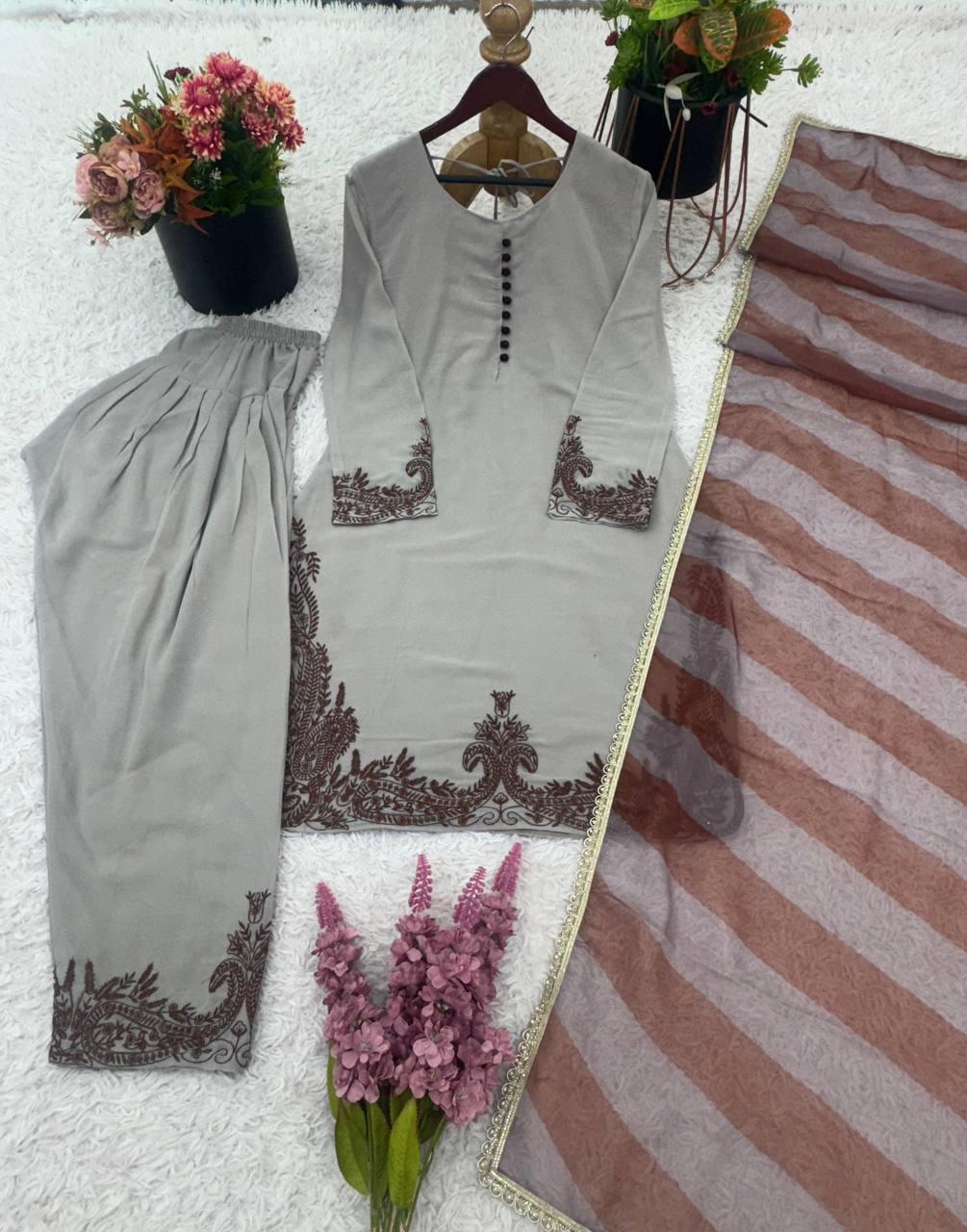 β¨ Top + Farshi Pant + Dupatta β Fully Stitched | Ready to Wear