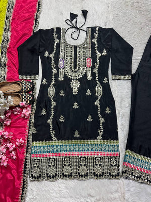 💃 Suit Fabric: Pure Heavy Chinnon Silk with Heavy Embroidery Coding Sequence Work and Full Embroidery Sleeves