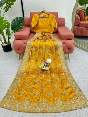 Looking for someone who loves this beautiful, designer saree made from Japan Satin Silk fabric. It features intricate thread and sequence work. The blouse is also crafted from Japan Satin Silk fabric, offering a cohesive and elegant look.
