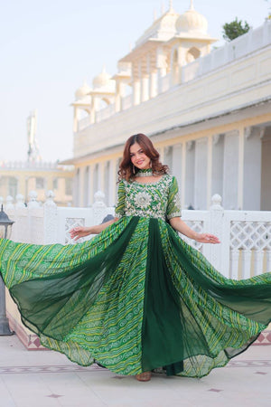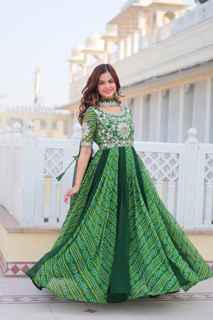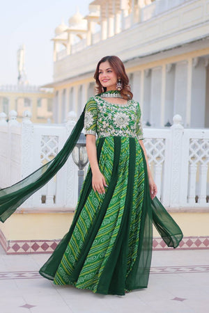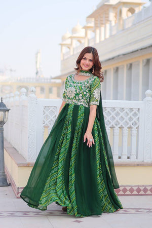 Here is a refined version of the product description for Yashuura New Festival Bandhej Gown & Dupatta:
