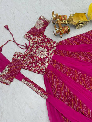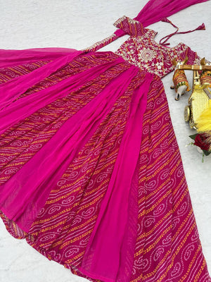 This festive season, embrace the elegance and traditional charm of Bandhej with exquisite sequins embroidery. Perfectly stitched for a comfortable and stylish fit, this set is designed to elevate your festive look.