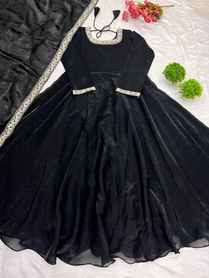 Here’s an updated description for your Heavy Designer Party Wear Gown-Dupatta Set with new colors: