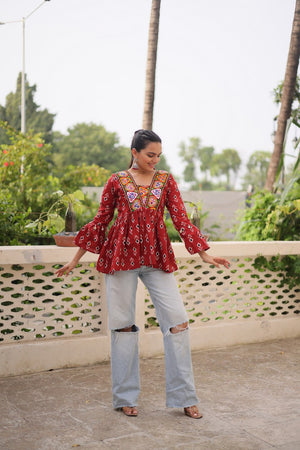 ๐ธ Fabric & Work: Soft Cotton Print adorned with traditional Kutchi Patchwork