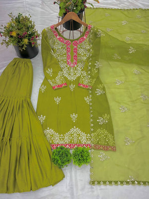 π₯ Presenting New Heavy Embroidery Sequence Work Top, Gharara, and Dupatta Set β Fully Stitched, Ready to Wear Collection! ππ₯°