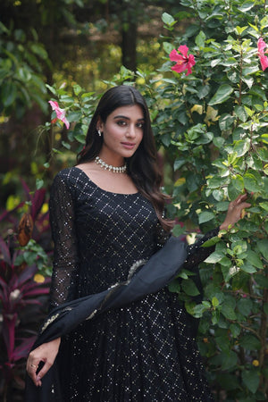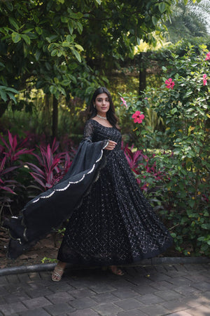 💗 Faux Georgette gown with Sequins-Multi Viscose thread Embroidered Work, It looks graceful for women, it Designed to flatter all body types, gowns for women combine the best parts of western and Indian wear into one stunning ensemble. 💝