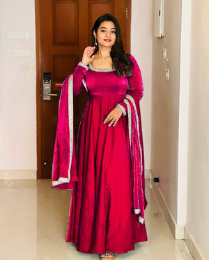 👗 Gown Size: Available in M (38), L (40), XL (42), XXL (44) (Fully Stitched, Ready to Wear)