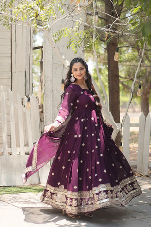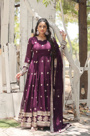 Elevate your style with our stunning gown and dupatta set, crafted from luxurious Faux Blooming fabric and adorned with rich sequins embroidery. Discover the perfect ensemble to add a touch of glamour and stand out from the crowd.