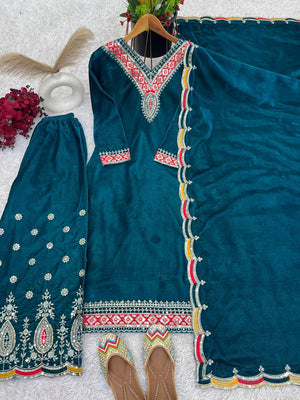 👗 Bottom Fabric: Viscose Velvet with Embroidery Sequence Work