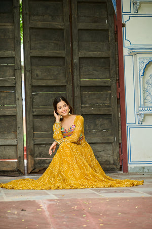 Fabric & Work: Traditional Bandhani print with Kutchi patchwork in Faux Georgette
