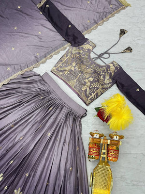 Fabric: Pure Pedding Chinon – The lehenga is crafted with the same luxurious fabric as the choli, creating a coordinated and elegant ensemble.