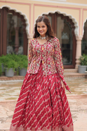 💕 Elevate your style with this trending and fashionable Co-ord Set, featuring a Rich Thread-Sequins Embroidered Blouse paired with a stunning Dayble Viscose Lehenga, perfect for any special occasion! 🥰