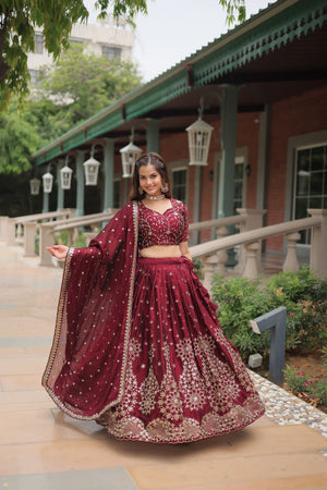 This exquisite Lehenga Choli set, with a beautifully embroidered Dupatta, will ensure you stand out in any gathering! ✨