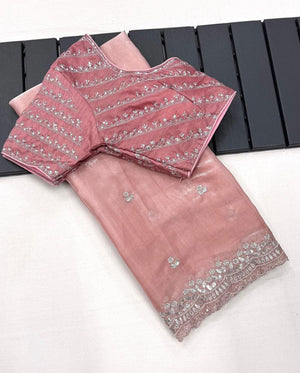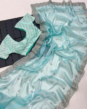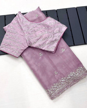 Blouse: Pure Soft Zimmy Choo Silk with full sequins work, designed to enhance the saree’s elegance