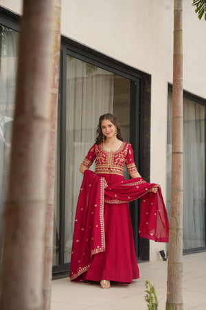 💝 Elegant Vichitra Silk Gown with Dupatta – 2025 Designer Collection