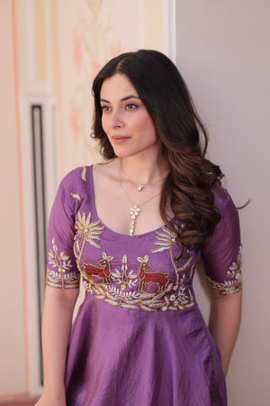 Step into effortless elegance with this stunning gown made from luxurious Gold Crush fabric, highlighted with delicate Beads Embroidered Work. Its grand 8-meter umbrella flair and soft cotton lining offer both style and comfort — perfect for parties, festive occasions, or elegant evenings.